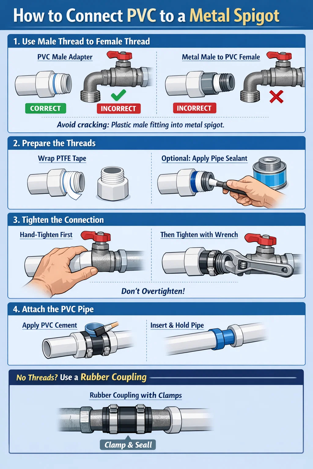 Collegare i tubi in PVC a un rubinetto in metallo (rubinetto o valvola in metallo) è un compito comune nelle riparazioni idrauliche domestiche. A causa della diversa durezza e dei tassi di espansione/contrazione termica della plastica e del metallo, è necessaria particolare attenzione durante il collegamento per evitare perdite o raccordi rotti.