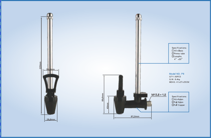 Questo rubinetto ti fa sapere quanta acqua aggiungere al tuo unità in acciaio inossidabile più facile. Costruzione di alta qualità. È possibile scegliere il tubo di mira in vetro o PC, rubinetto di livello commerciale.