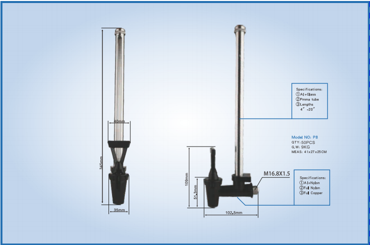 Questo rubinetto ti fa sapere quanta acqua aggiungere al tuo unità in acciaio inossidabile più facile. Costruzione di alta qualità. È possibile scegliere il tubo di mira in vetro o PC, rubinetto di livello commerciale.